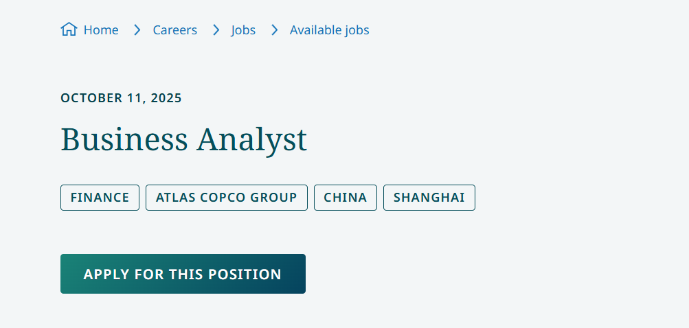 Atlas Copco Hiring in Shanghai, China | Apply Now for Business Analyst Role